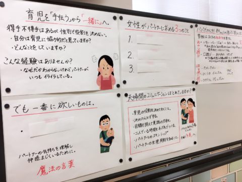 講座の中では赤ちゃんが産まれてから育児を2人で「共導」へ意識を向けることや