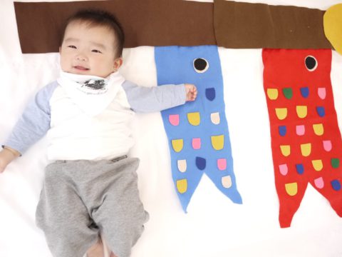 出かける30分前に思いつき、材料もお見事揃っていたので、鯉のぼりのあしがたアートを作りました。