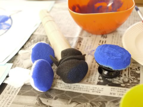 タンポで表現するにもいろいろな、素材を使ってみたり